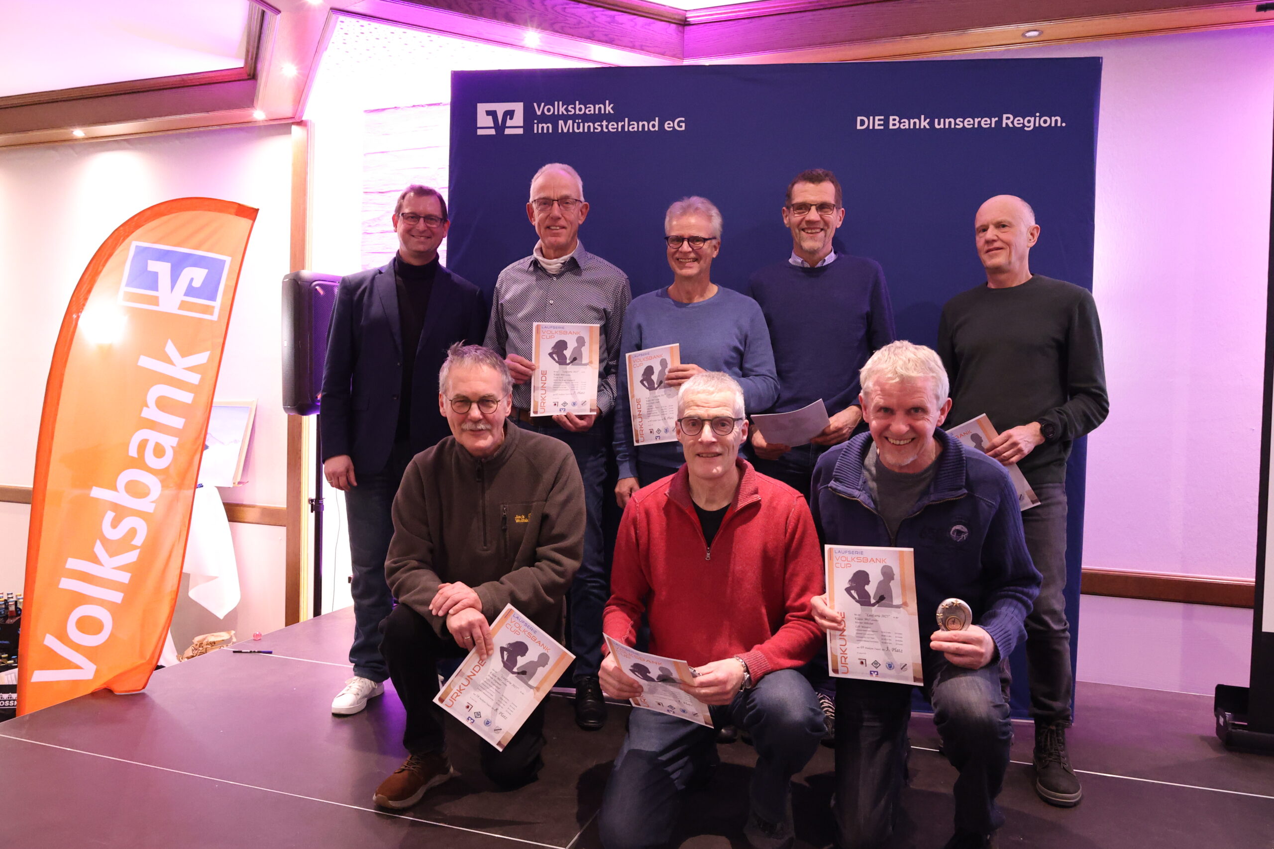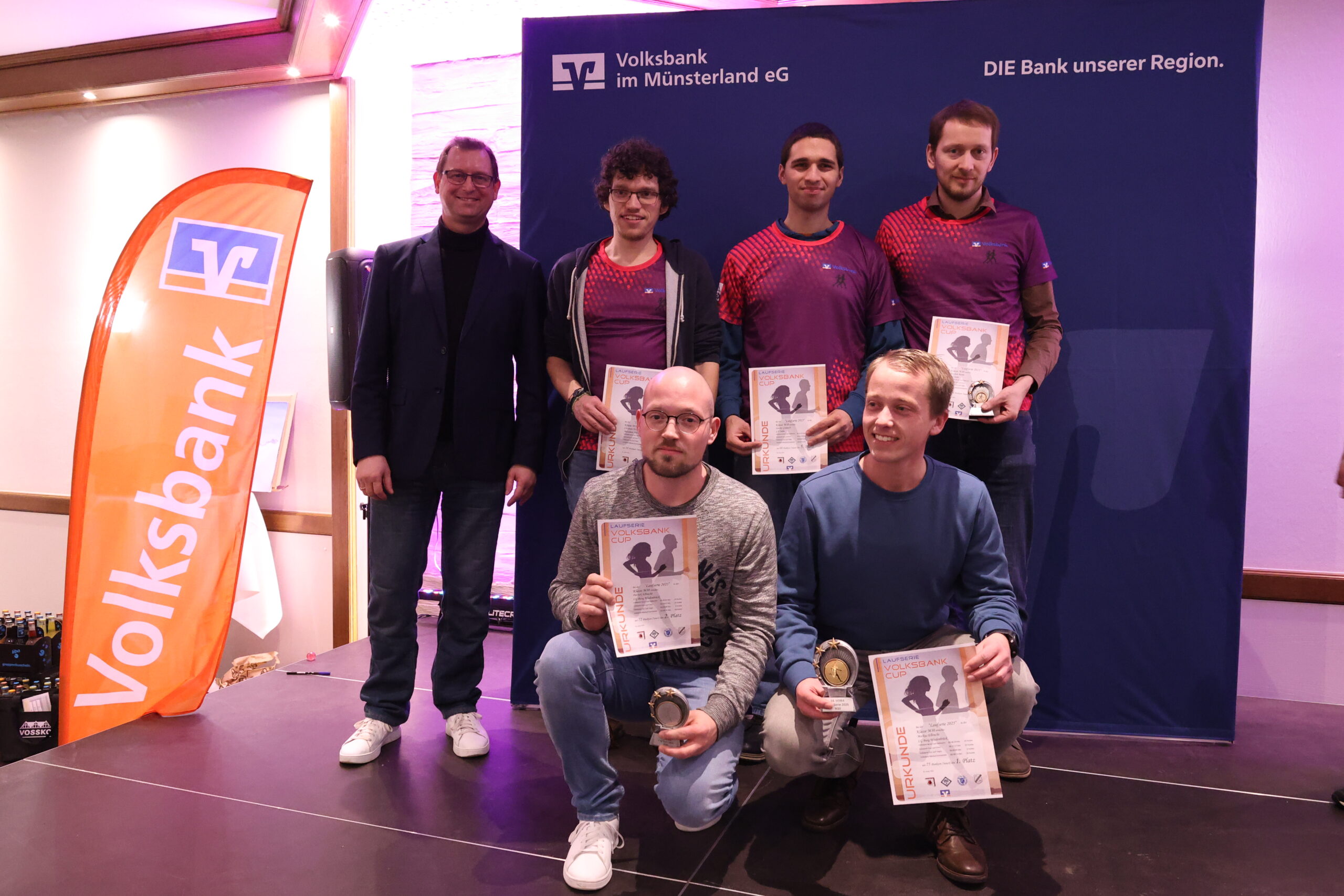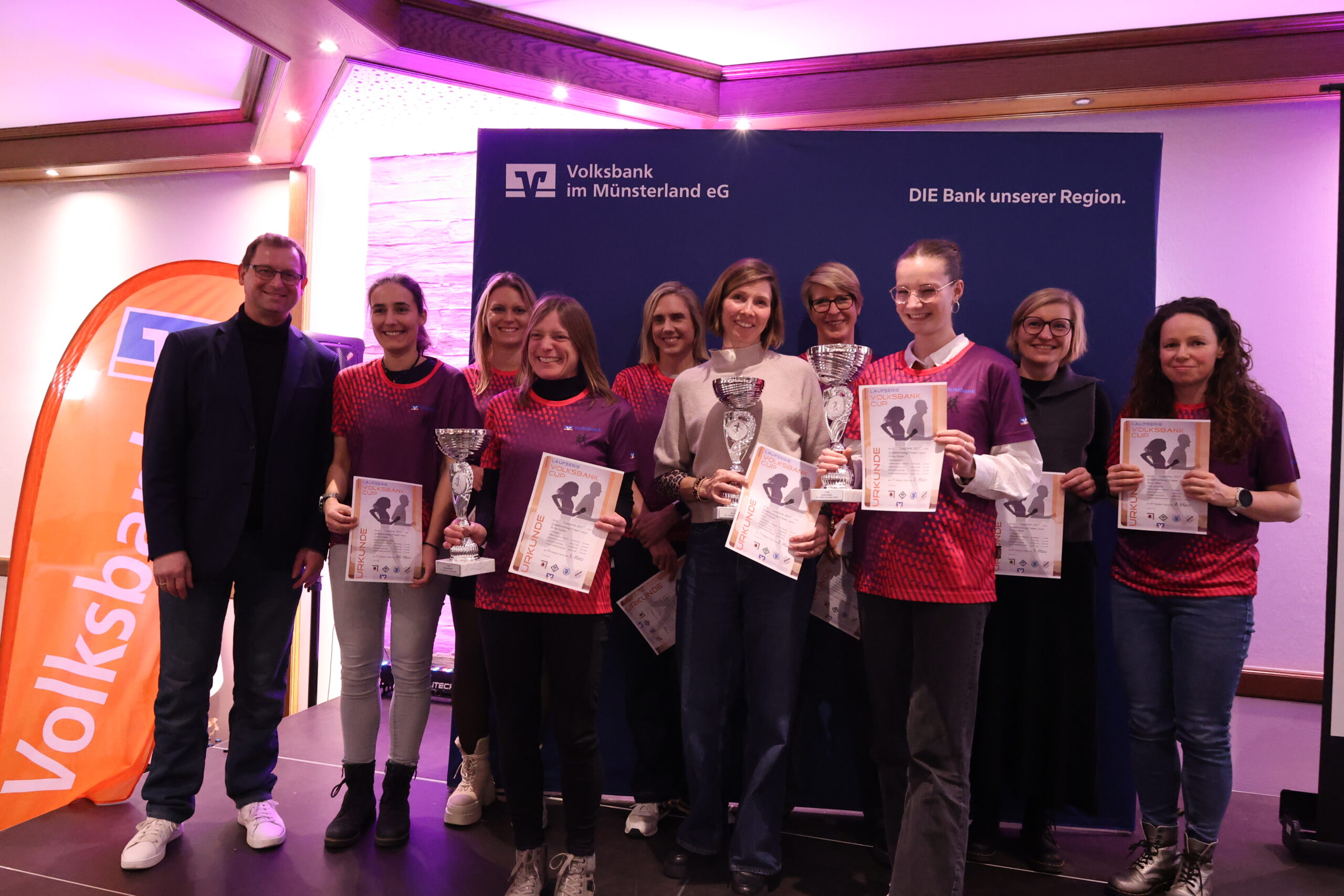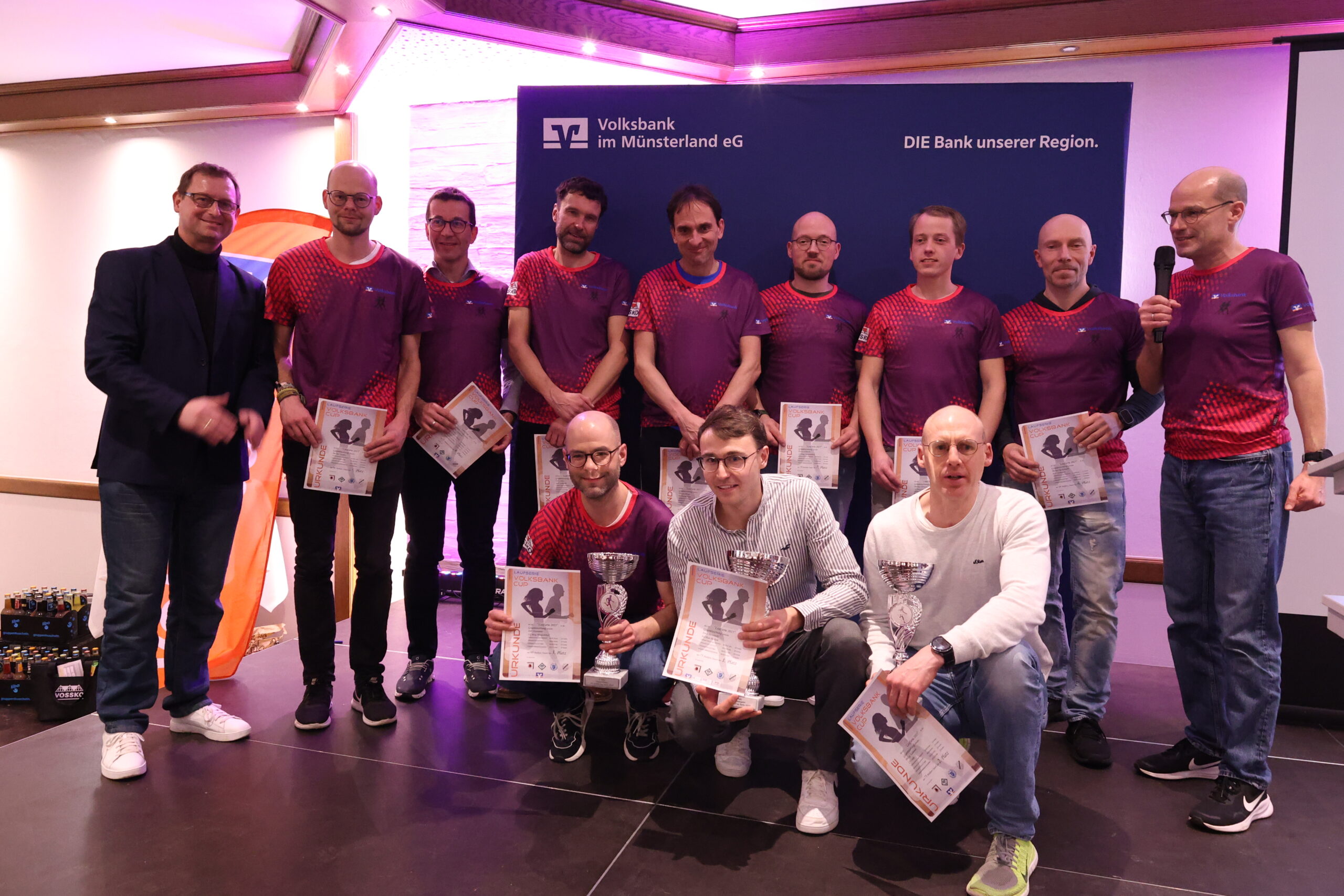 Lange hatten die Läuferinnen und Läufer gerätselt, wie es nach dem letzten Everswinkeler Nikolauf 2025 mit der Volksbank-Cup-Laufserie durch den Kreis Warendorf weitergeht. Während der Abschlussveranstaltung in der Gaststätte Mersbäumer in Ostbevern lüftete Moderator Mirco Borgmann aus dem Orga-Team das lang gehütete Geheimnis: Der Citylauf in Oelde (13. Juni) wird neuer Bestandteil der Laufserie werden. Der Volksbank-Emslauf in Einen, dessen Fortsetzung ebenso in den Sternen stand, bekommt mit dem 24. April einen neuen Termin und wird Auftaktlauf der Serie. Der Volksbank-Beverlauf Ostbevern (27. Juni) rutscht auf die dritte Stelle, der Volksbank-Citylauf Telgte (26. September) bildet den Schlusslauf der Serie.
